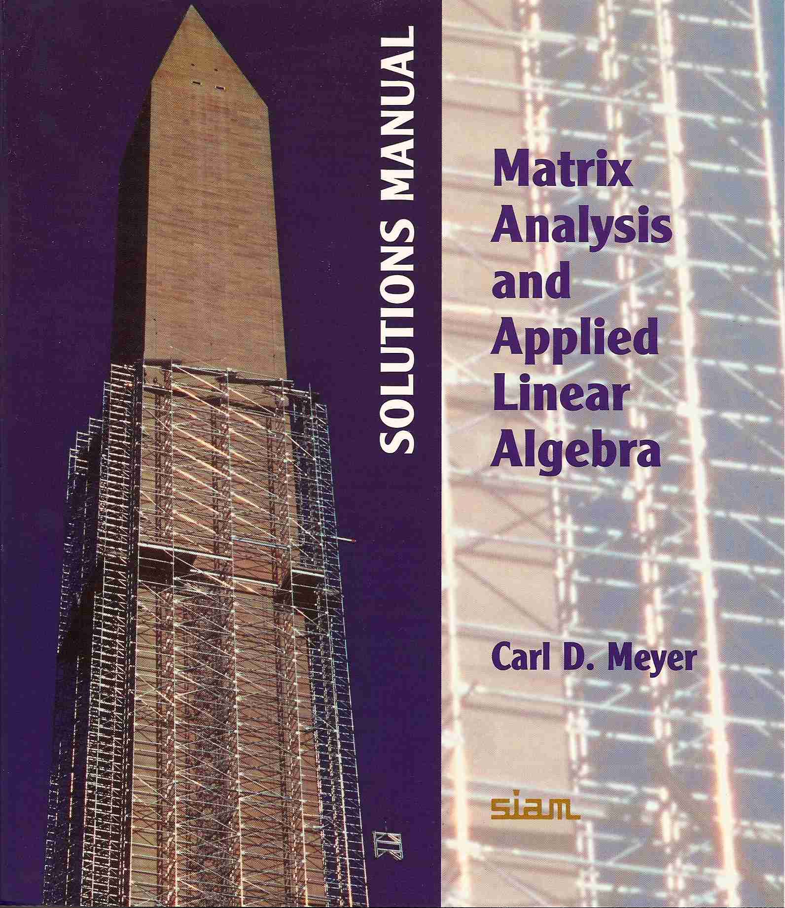 Book Description Matrix Analysis and Applied Linear Algebra is an honest math text that circumvents the traditional definition-theorem-proof format that has bored students in the past. Meyer uses a fresh approach to introduce a variety of problems and examples ranging from the elementary to the challenging and from simple applications to discovery problems. The focus on applications is a big difference between this book and others. Meyer's book is more rigorous and goes into more depth than some. He includes some of the more contemporary topics of applied linear algebra which are not normally found in undergraduate textbooks. Modern concepts and notation are used to introduce the various aspects of linear equations, leading readers easily to numerical computations and applications. The theoretical developments are always accompanied with examples, which are worked out in detail. Each section ends with a large number of carefully chosen exercises from which the students can gain further insight.
